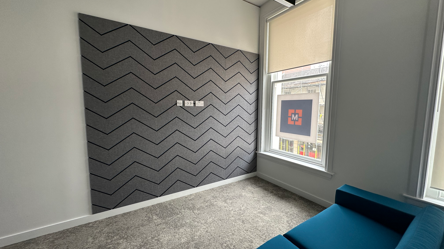 The primary goal was to design and install an effective acoustic treatment solution throughout the new office. This included reducing noise levels, managing sound reflections, and ensuring optimal acoustic performance across open-plan areas, meeting rooms, and collaboration spaces. The installation needed to be completed within a strict 6-week timeline to align with Sumo Digital’s move-in schedule.